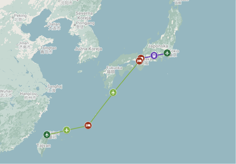 • 2 Inlandsflüge (Osaka–Okinawa, Okinawa–Taipeh)