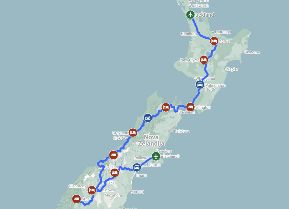 - Die Reise kann auch in umgekehrter Richtung durchgeführt werden (Auckland → Christchurch)