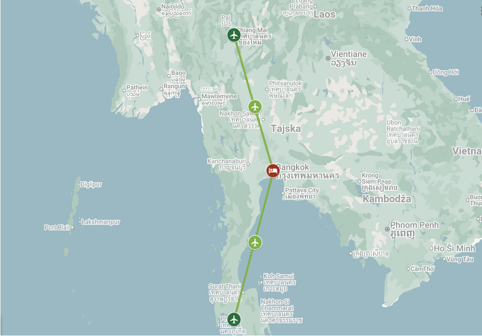 - 2 Inlandsflüge (Chiang Mai, Bangkok, Krabi)